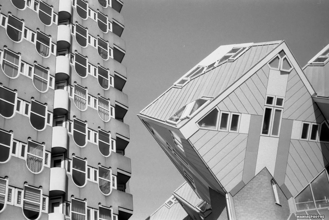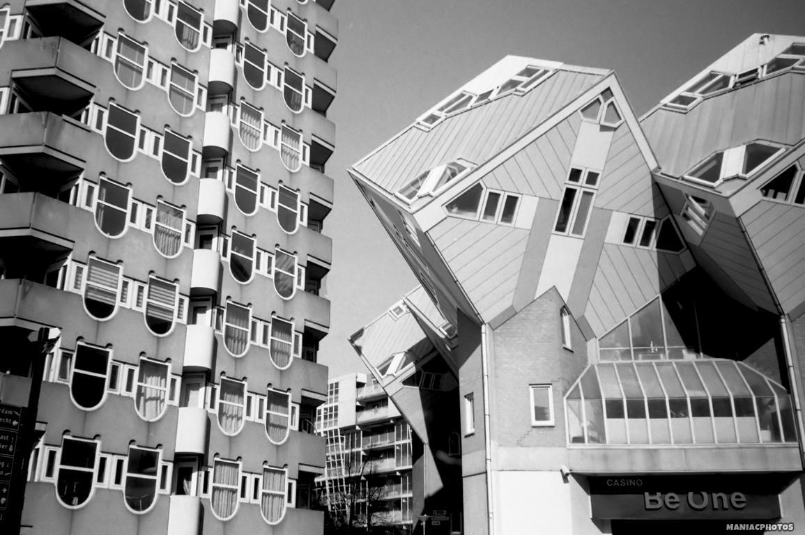 Die Fotos zeigen die Cubus-Häuser in Rotterdam mit und ohne Autozoom. Hier hat das System im unteren Bild selbst gewählt.