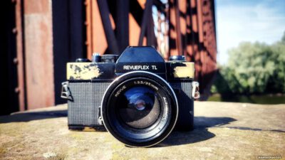 Abgeranzt ist sie ja, die Revueflex TL… Dafür ist dieses Modell leider bekannt… Aber wenn wir lieb „Patina“ dazu sagen, klingt es doch schon ganz anders… 😉 Oft gelesene Bücher haben ja auch…